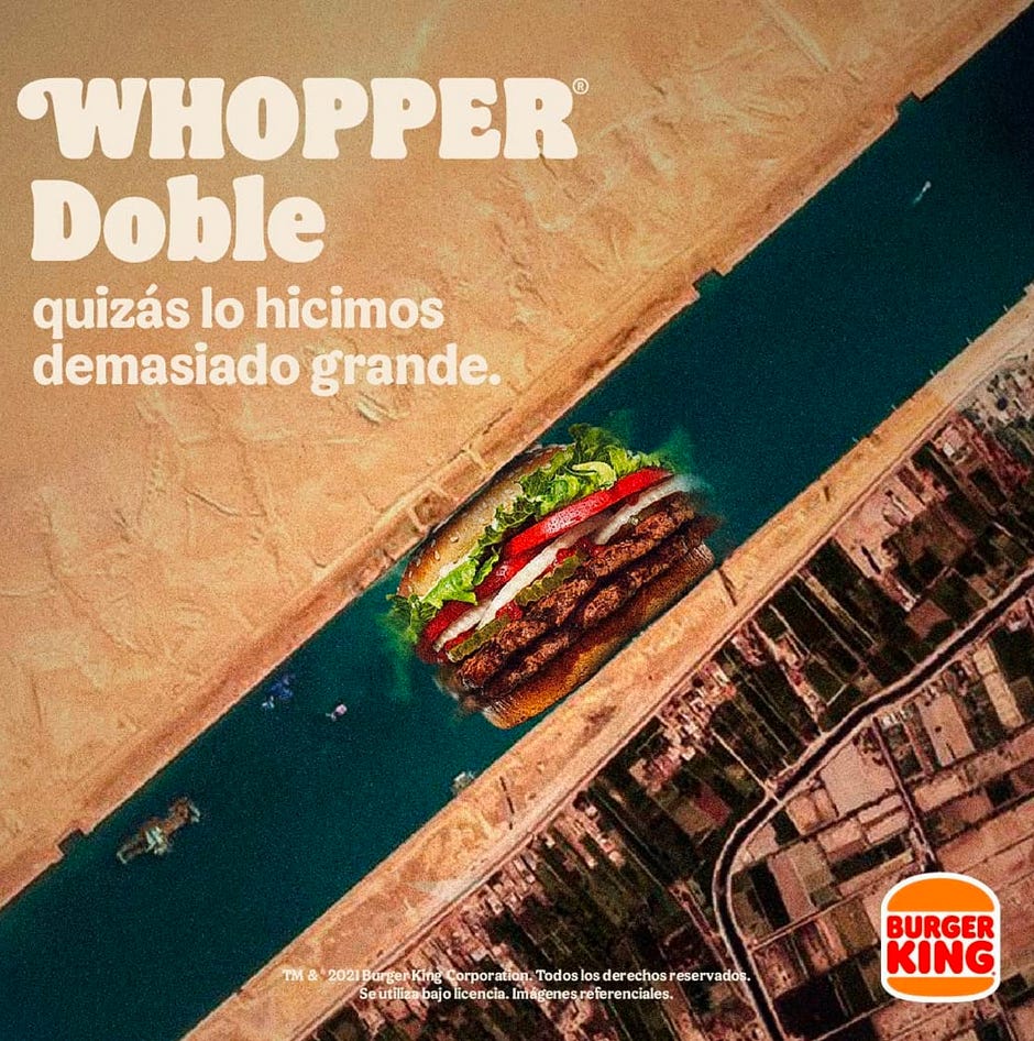 Promoting a sandwich with the maritime trade blockage on Suez fuels #BoycottBurgerKing